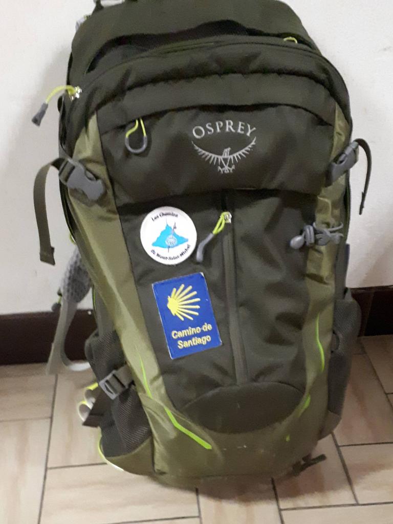 Le sac à dos d'un pèlerin de retour du chemin marché en 2021