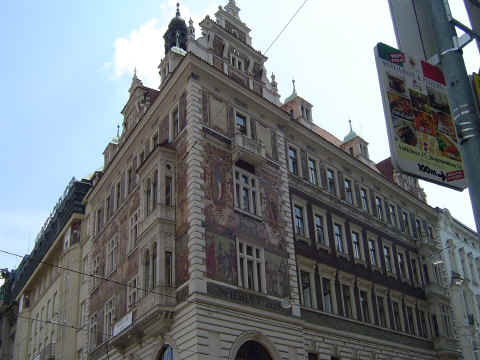 Bâtiment peint. La monnaie officielle est la couronne tchèque, mais l'Euro est accepté presque partout