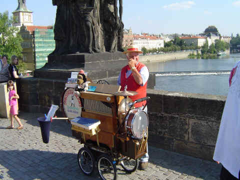 Une cithare sur le pont Charles donne une note désuète au lieu